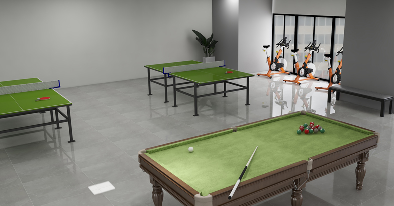 AEON A70跑步機4臺、6550D橢圓機4臺、B8+動感單車3臺、臺球桌1套、乒乓球臺2套及CS系列力量鍛煉器材10套。